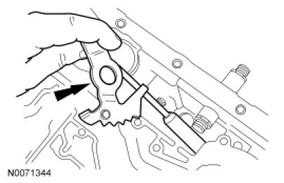 12. NOTE: Align the flats on the manual valve inner lever with the flats on the manual control lever shaft.