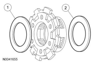 - Coat the output shaft thrust washer with petroleum jelly.
