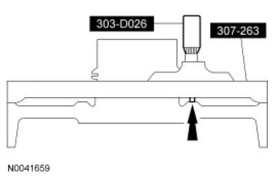 33. Place the Shim Selection Gauge across the center support. Place the Depth Micrometer on the top of the Shim Selection Gauge.