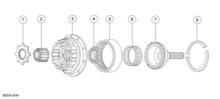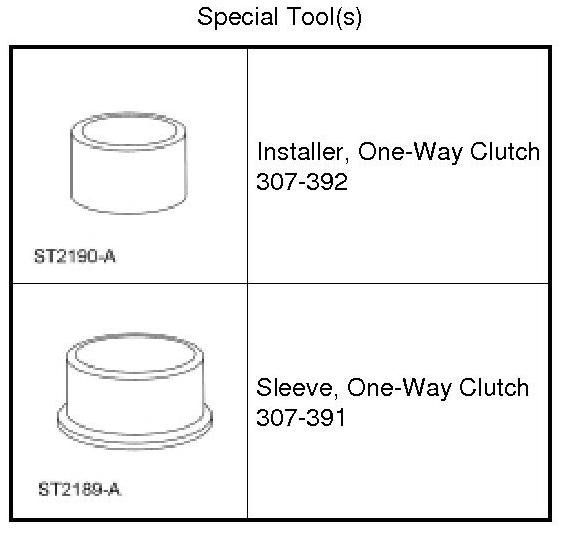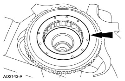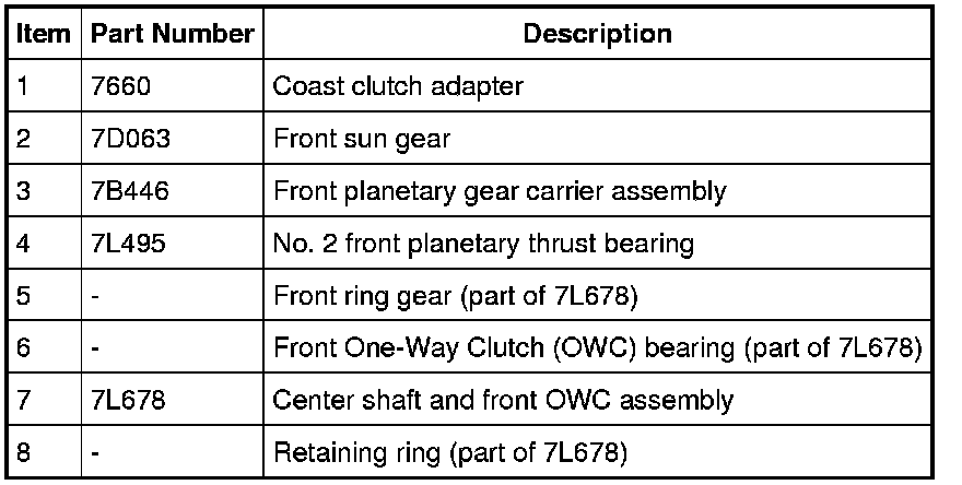 3. NOTE: If the inner race of the O/D planetary gear is damaged, installation of a new front OWC will be required. If the center shaft is damaged, installation of a new complete front OWC will be required.