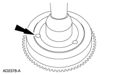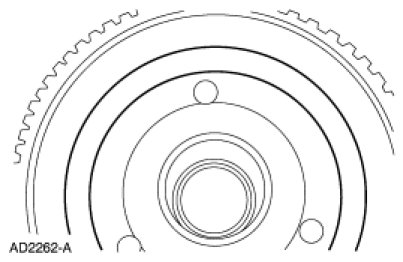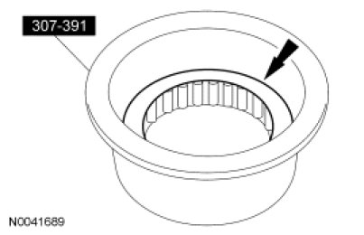 Inspect the center shaft bore for damage. If the outer race of the center shaft bore is damaged, a new front OWC and center shaft must be installed.