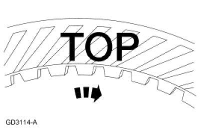 9. NOTICE: The direct clutch friction plates are directional and must be installed with grooves pointing clockwise (ID to OD) and the word TOP facing up. Improper installation can result in transmission damage.