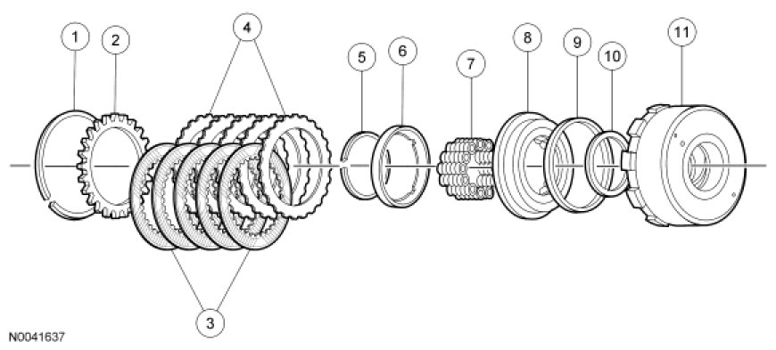 NOTE: If new plates are used, they should be soaked in transmission fluid before assembly.