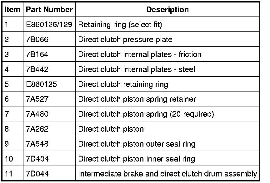 NOTE: The direct clutch piston must apply with air pressure and release when the air is removed.