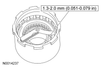 - If specifications do not match, use a select fit direct clutch retaining ring to match specifications and verify with a feeler gauge.