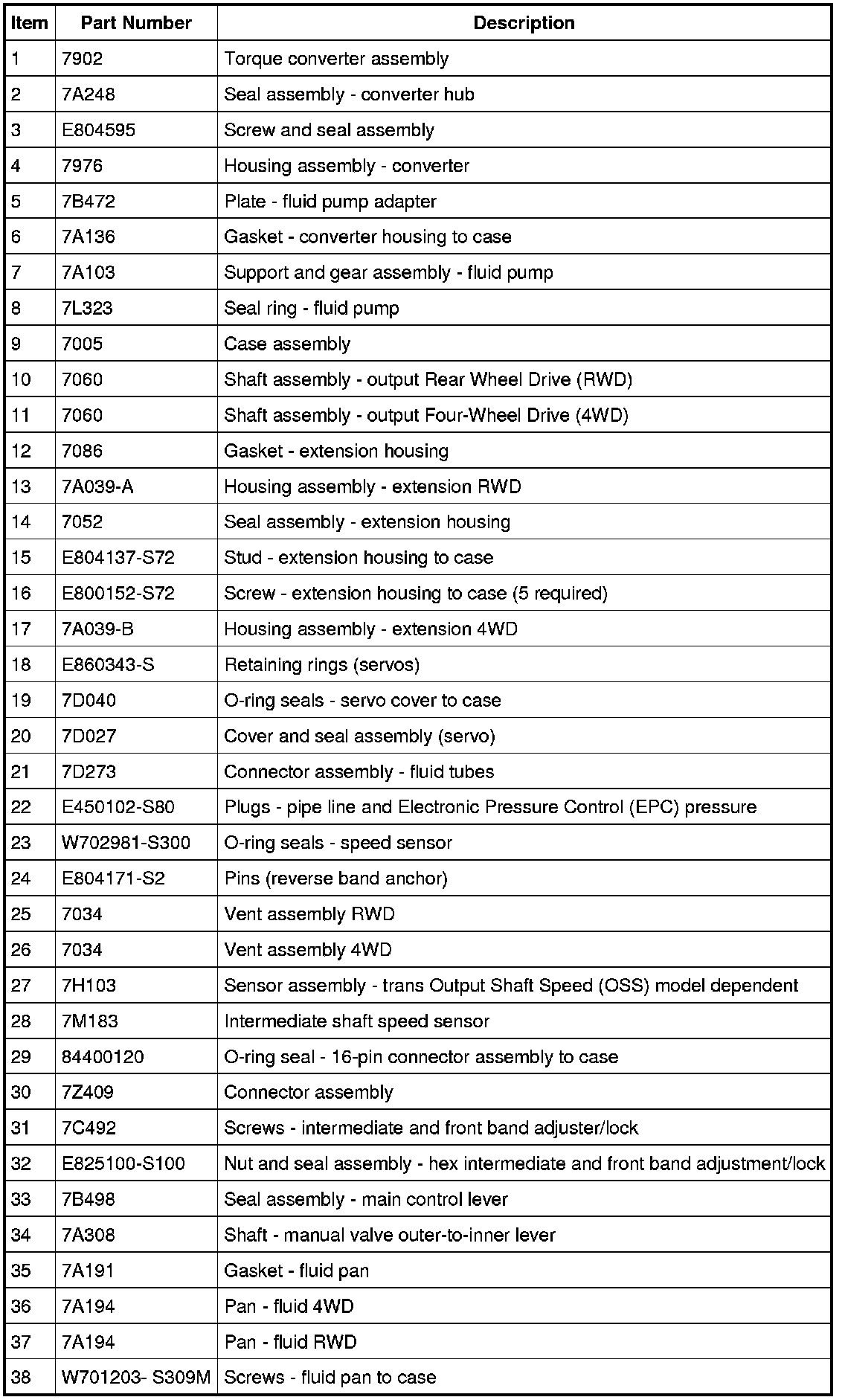 The transmission has the following parts to prevent external transmission fluid leakage: