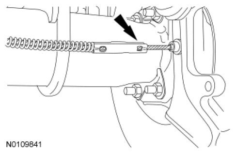 1. Release the parking brake cable tension. For additional information, refer to Parking Brake and Actuation Procedures.