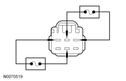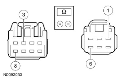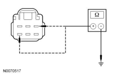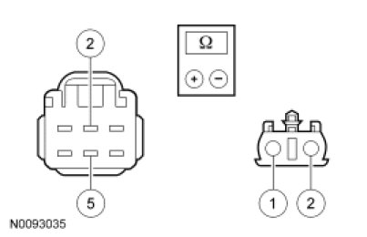- Measure the resistance between passenger window control switch C604-3, circuit CPW14 (VT/WH) harness side and SJB C2280C-13, circuit CPW14 (VT/WH) harness side.