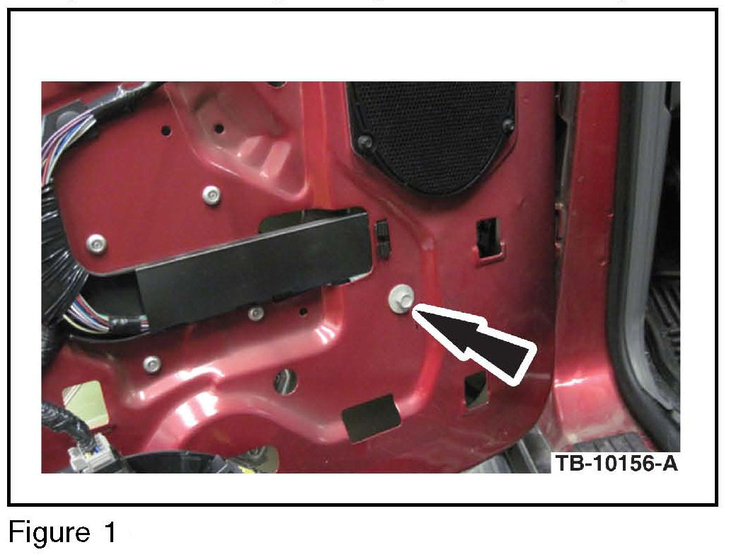 4. Remove the door glass top run bolt. (Figure 1) (Photo of door glass top run bolt location)