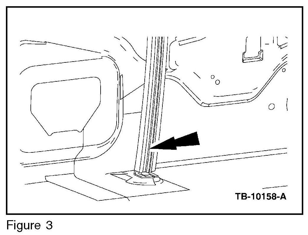 13. Cut a 10 mm (3/8") length of 3/8" ID vacuum hose and insert into channel at bottom of center door glass run. (Figure 3)