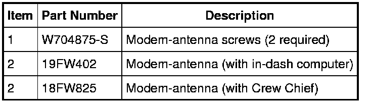 NOTE: For vehicles with an in-dash computer, the customer must contact the internet service provider to re-activate the account after the modem-antenna has been replaced. The account must be re-activated before internet services can operate correctly.