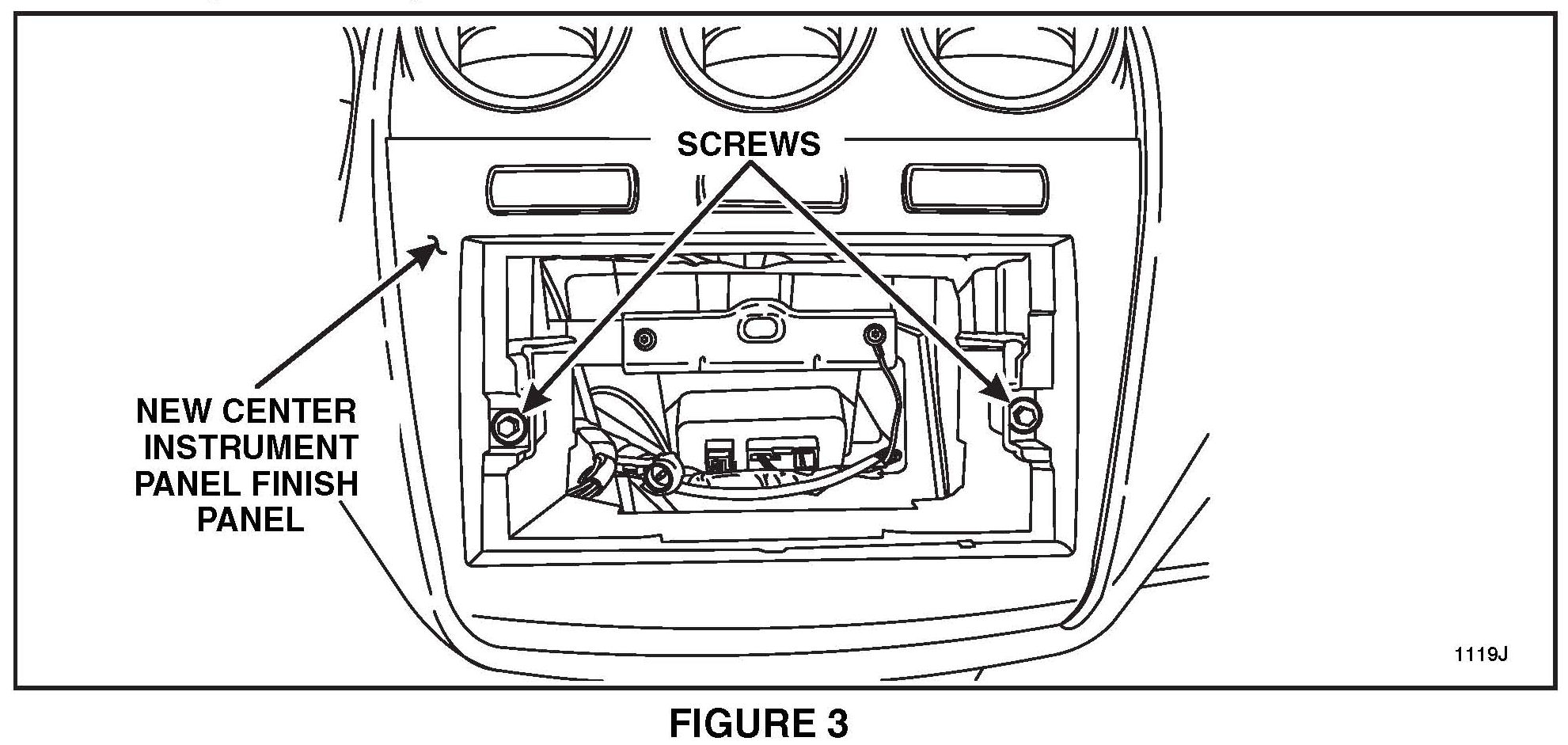 8. Install the new center instrument panel finish panel using 2 of the screws previously used for the In-Dash Computer. See Figure 3.