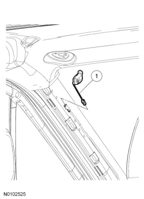 1. Remove the LH A-pillar trim panel. For additional information, refer to Interior Trim - Exploded View in Interior Trim and Ornamentation A-Pillar Trim Panel.