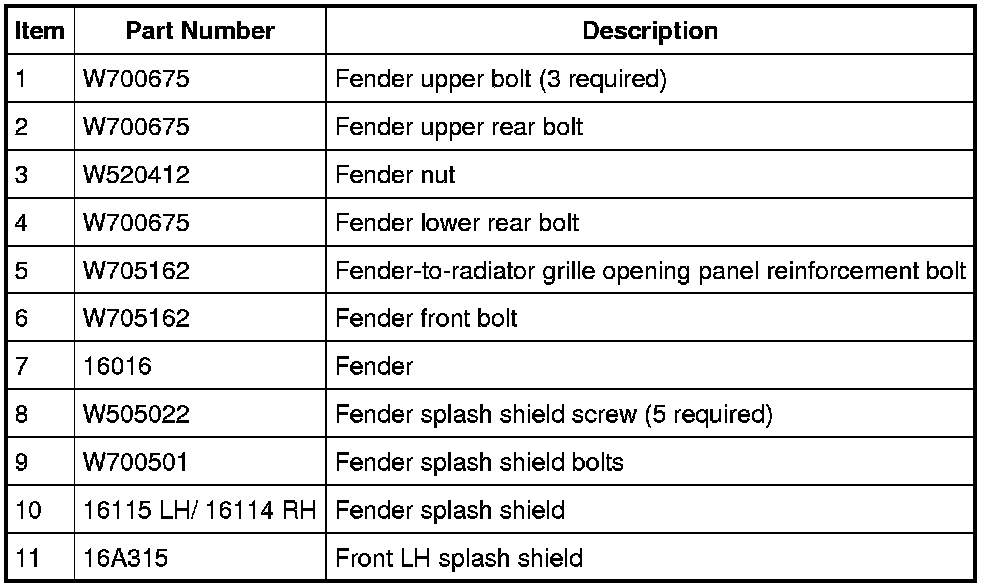 Front End Body Panels - Exploded View