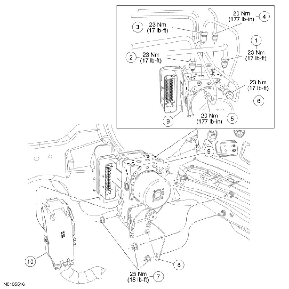 - To install, tighten the RF and LR brake tube fittings to 20 Nm (177 lb-in).