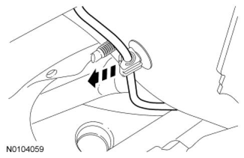 14. Remove the LF brake tube from the retaining clip on the LH inner frame rail.