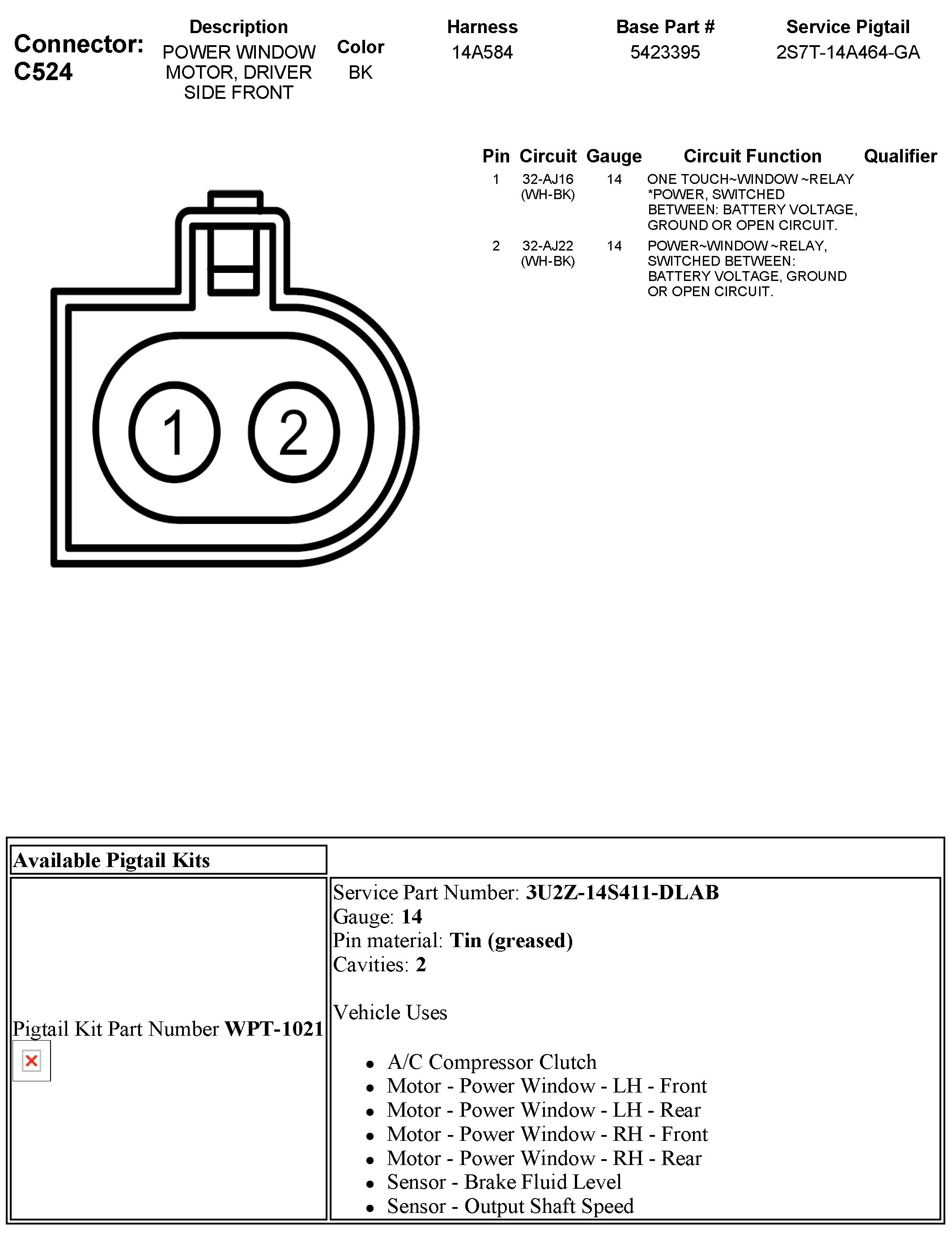 C524 Power Window Motor, Driver Side Front