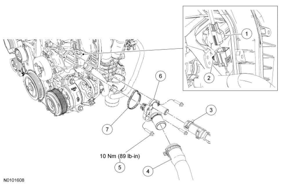 7. NOTE: Lubricate the thermostat housing seal with clean engine coolant.