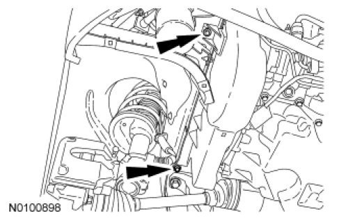 2. Remove the 2 bolts and accessory drive belt splash shield.