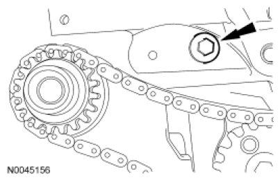 40. Install the oil pump chain tensioner shoulder bolt.
