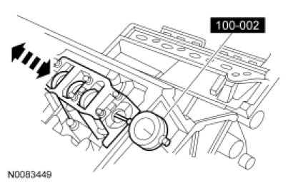 4. Move the camshaft to the front of the cylinder head. Note and record the camshaft end play.