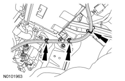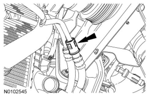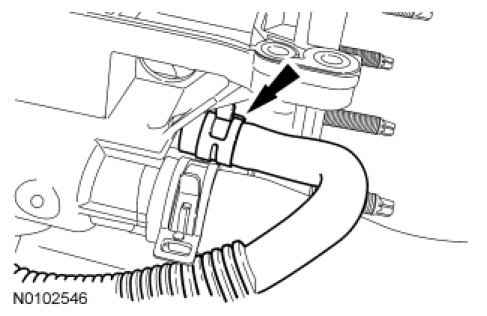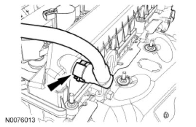 63. Position and connect the Evaporative Emission (EVAP) tube. For additional information, refer to Fuel System - General Information Service and Repair.