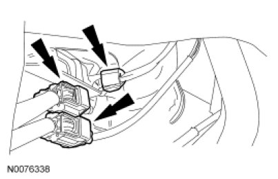 56. Connect the Heated Oxygen Sensor (HO2S) and Catalyst Monitor Sensor (CMS) electrical connectors and attach the wire harness retainer.