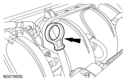 16. Attach the wire harness pin-type retainer to the intake manifold.