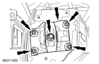 25. Install the transaxle mount plate and the 5 nuts.