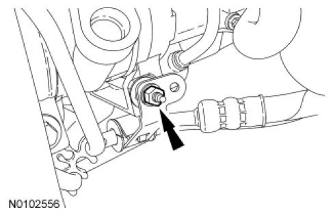 22. Position the Heated Oxygen Sensor (HO2S) and Catalyst Monitor Sensor (CMS) wire connector bracket and install the nut.