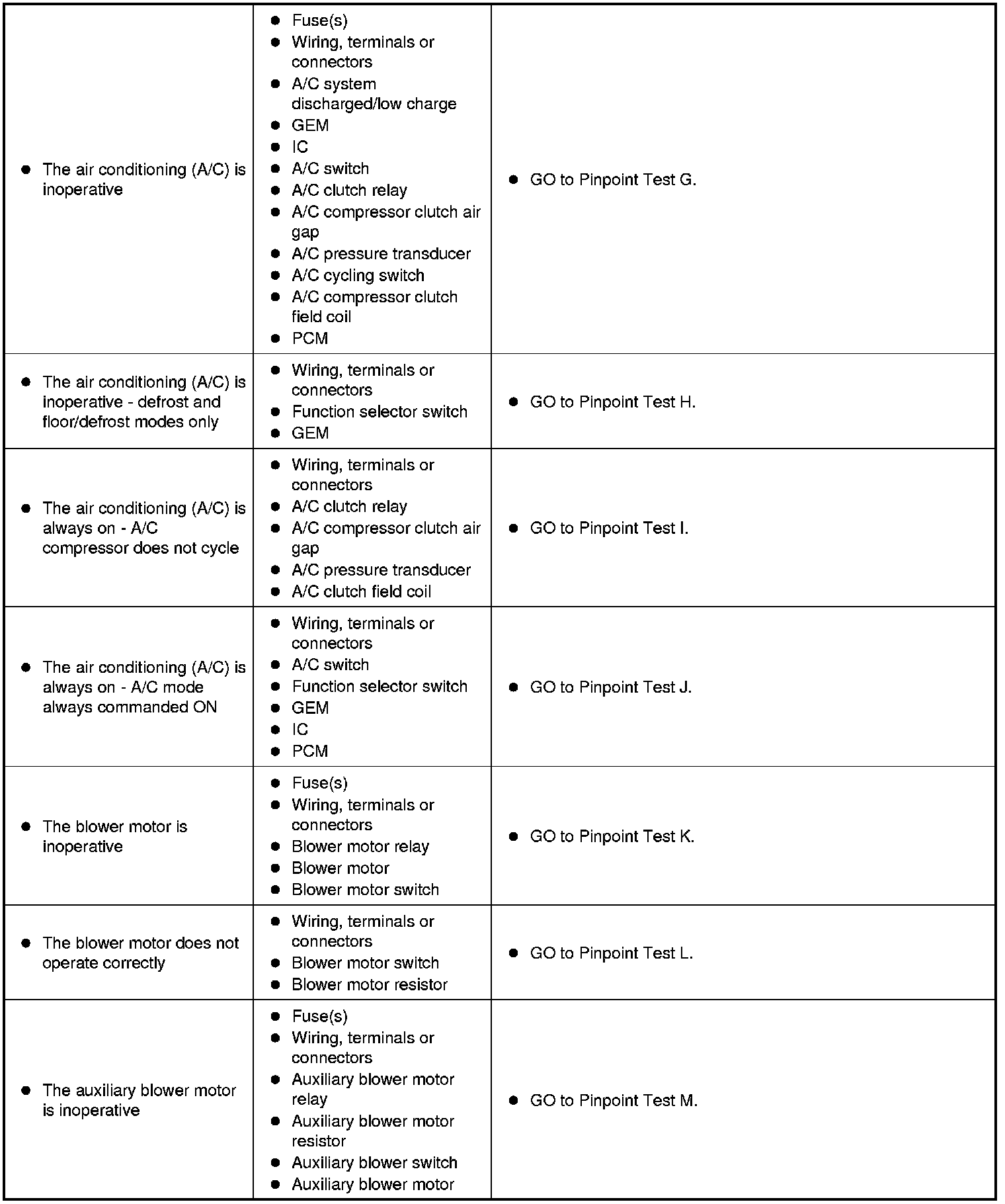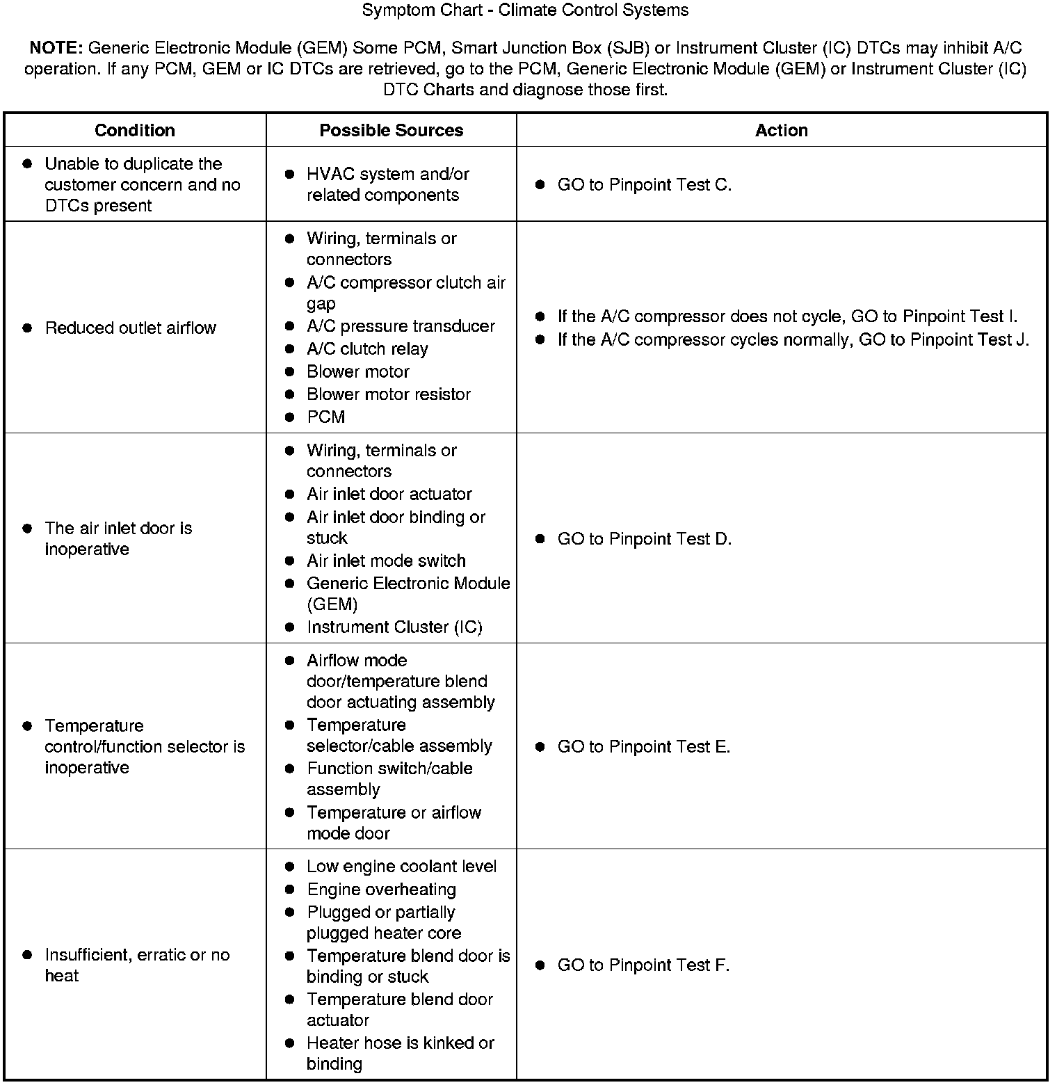 Symptom Chart - Climate Control Systems