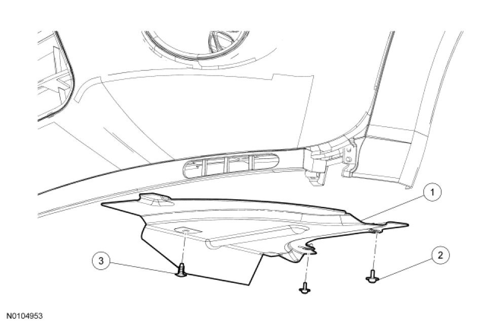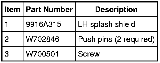 2. Remove the 2 push pins, the screw and the LH splash shield.