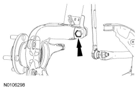 3. NOTICE: The wheel knuckle-to-strut bolt is tightened in 2 stages. Failure to follow these instructions may result in incorrect clamp load and component damage.