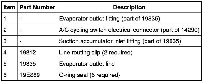 7. Detach the evaporator outlet line from the 2 line routing clips.
