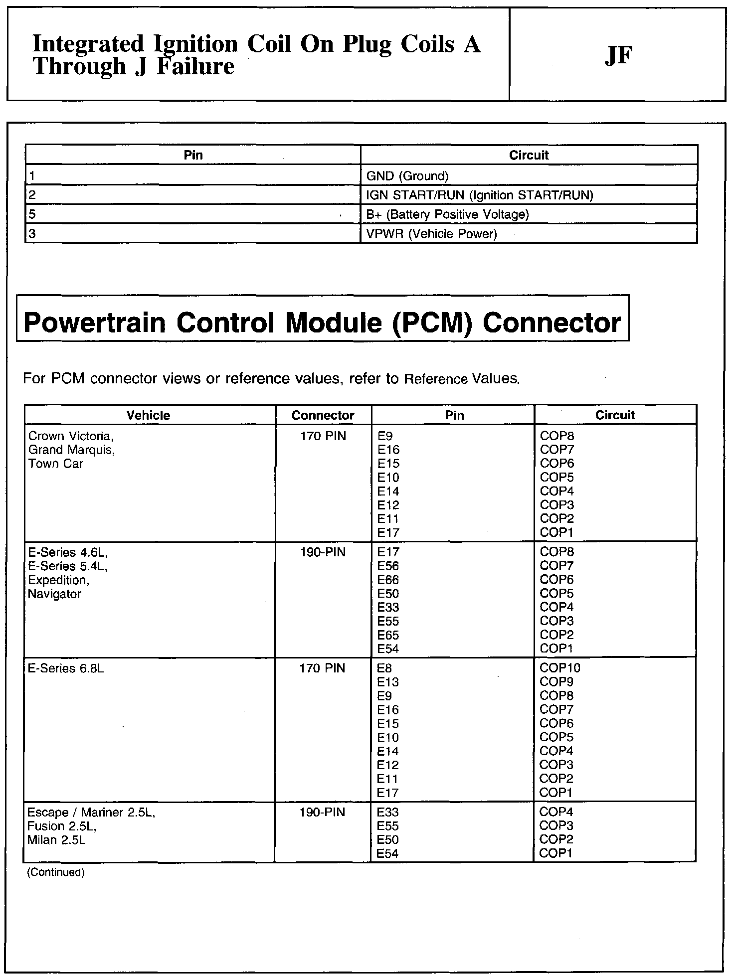 PINPOINT TEST JF: INTEGRATED IGNITION COIL ON PLUG COILS A THROUGH J FAILURENote And Coil On Plug (COP) Connector: