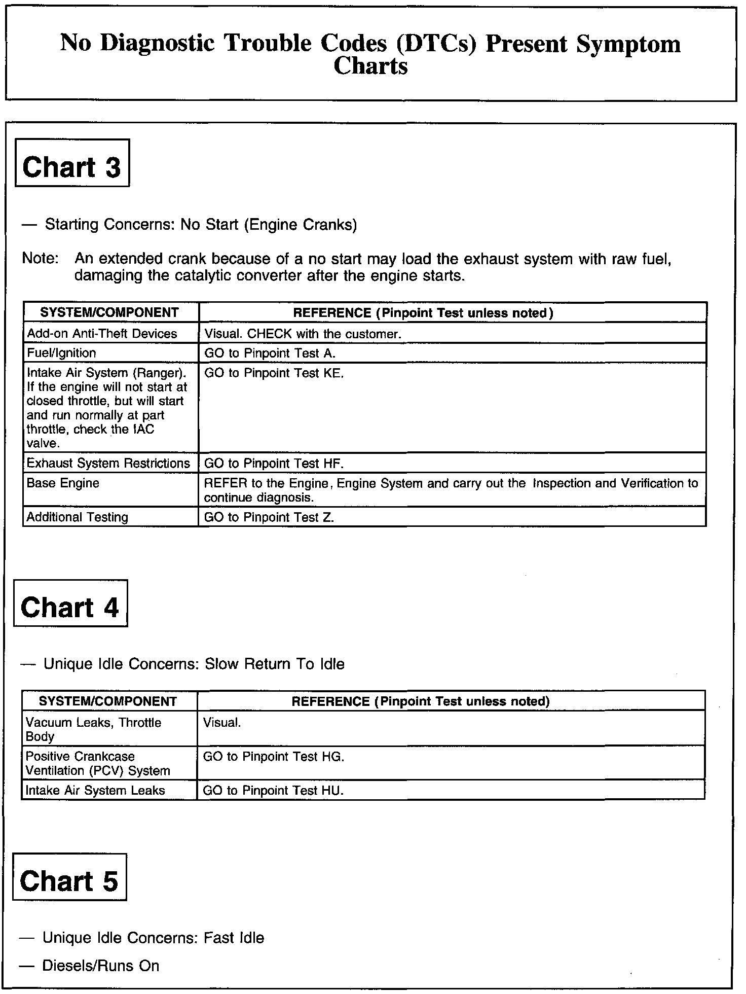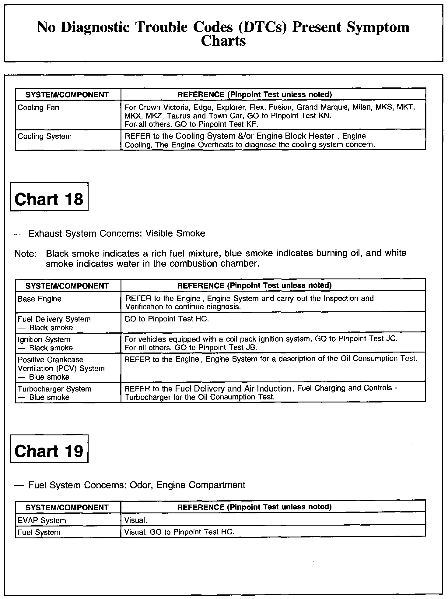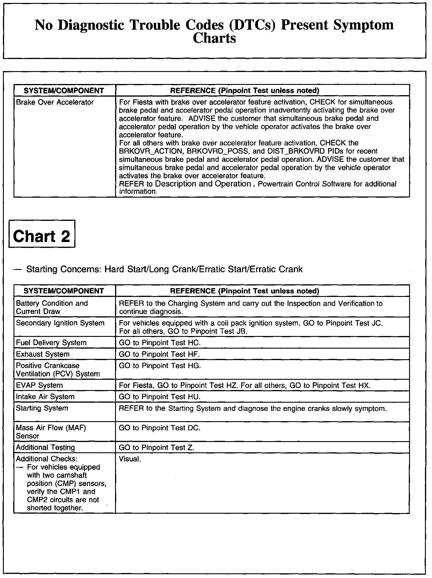 NO DIAGNOSTIC TROUBLE CODES (DTCS) PRESENT SYMPTOM CHARTSChart 1: