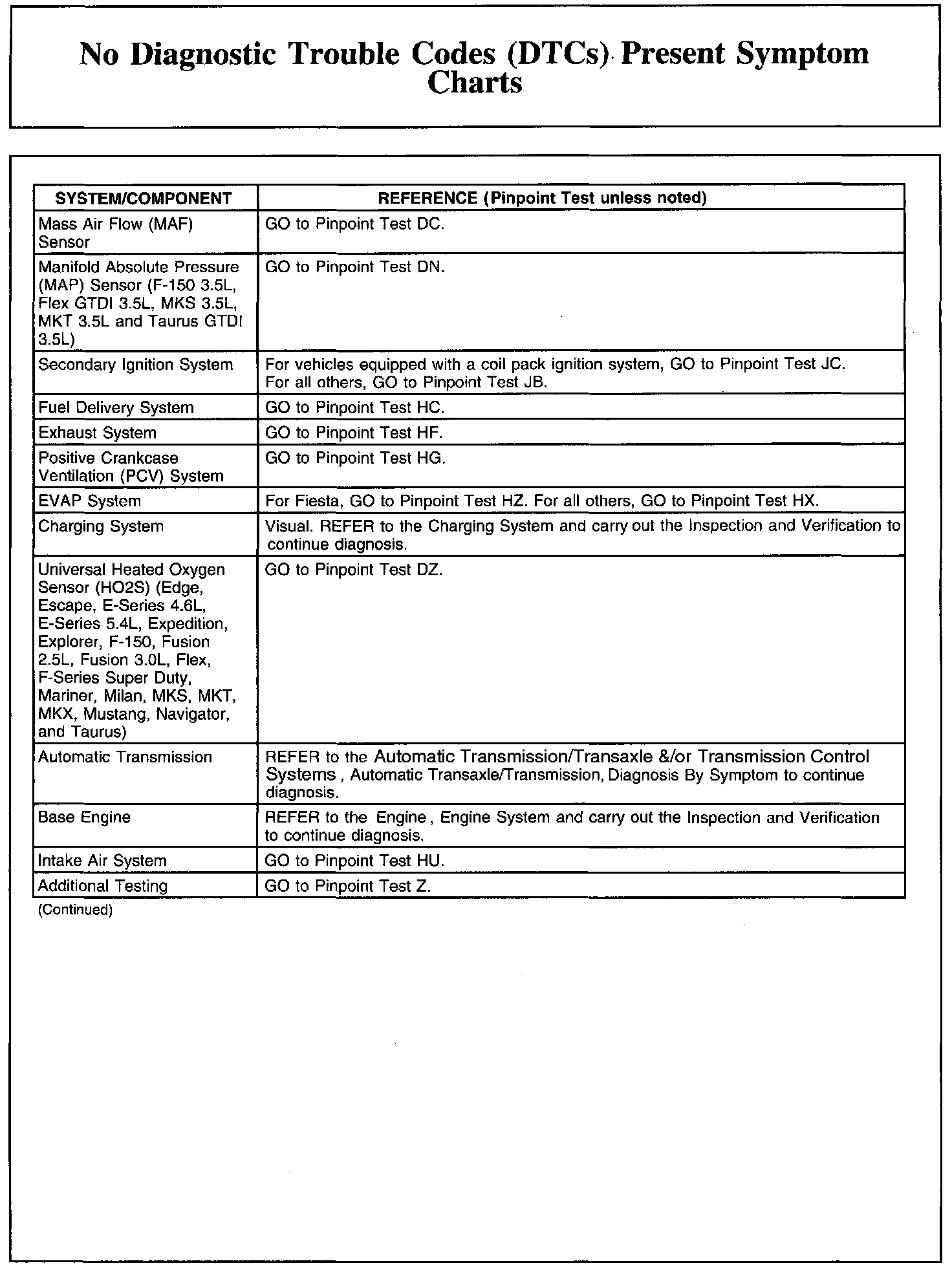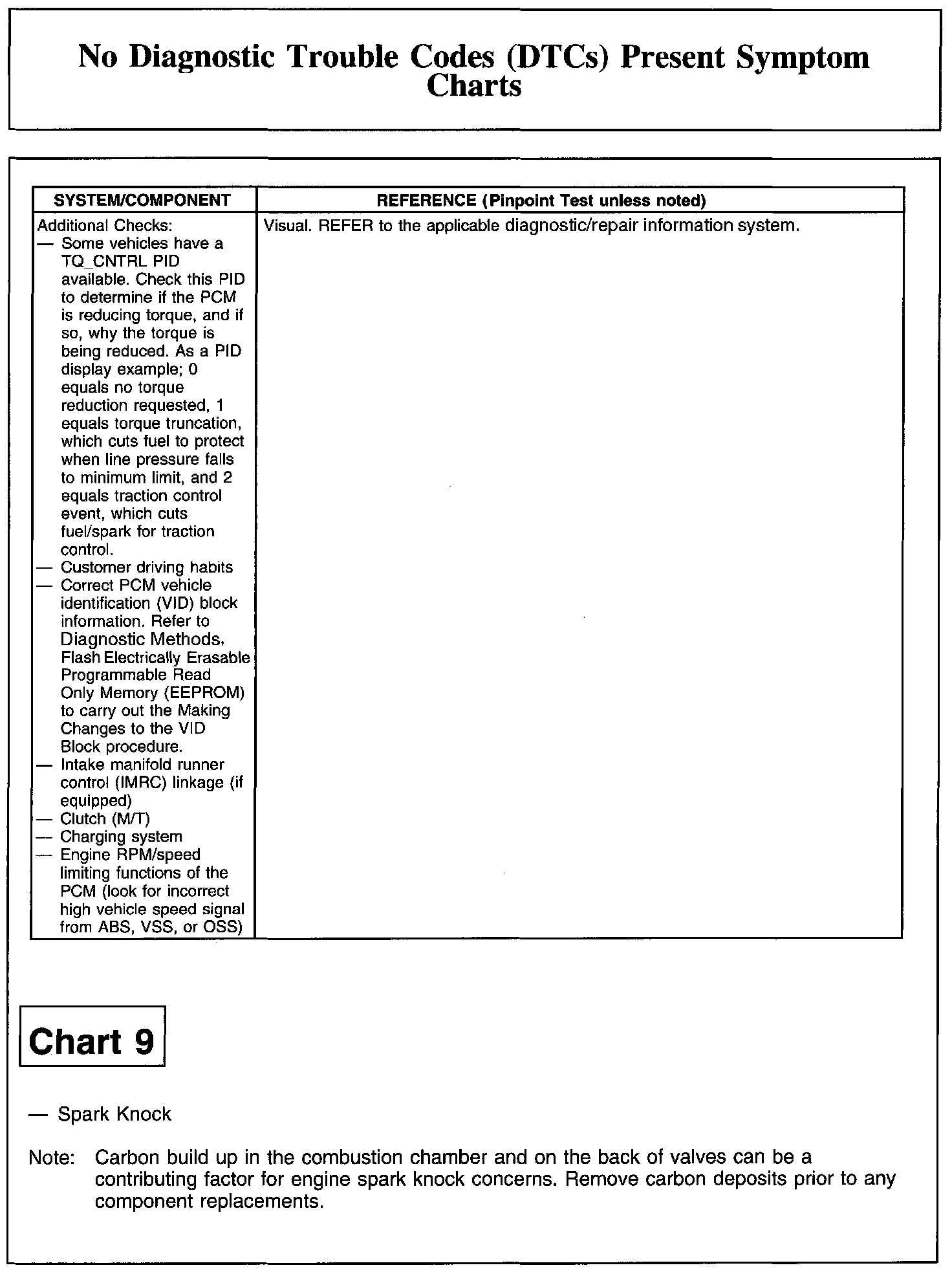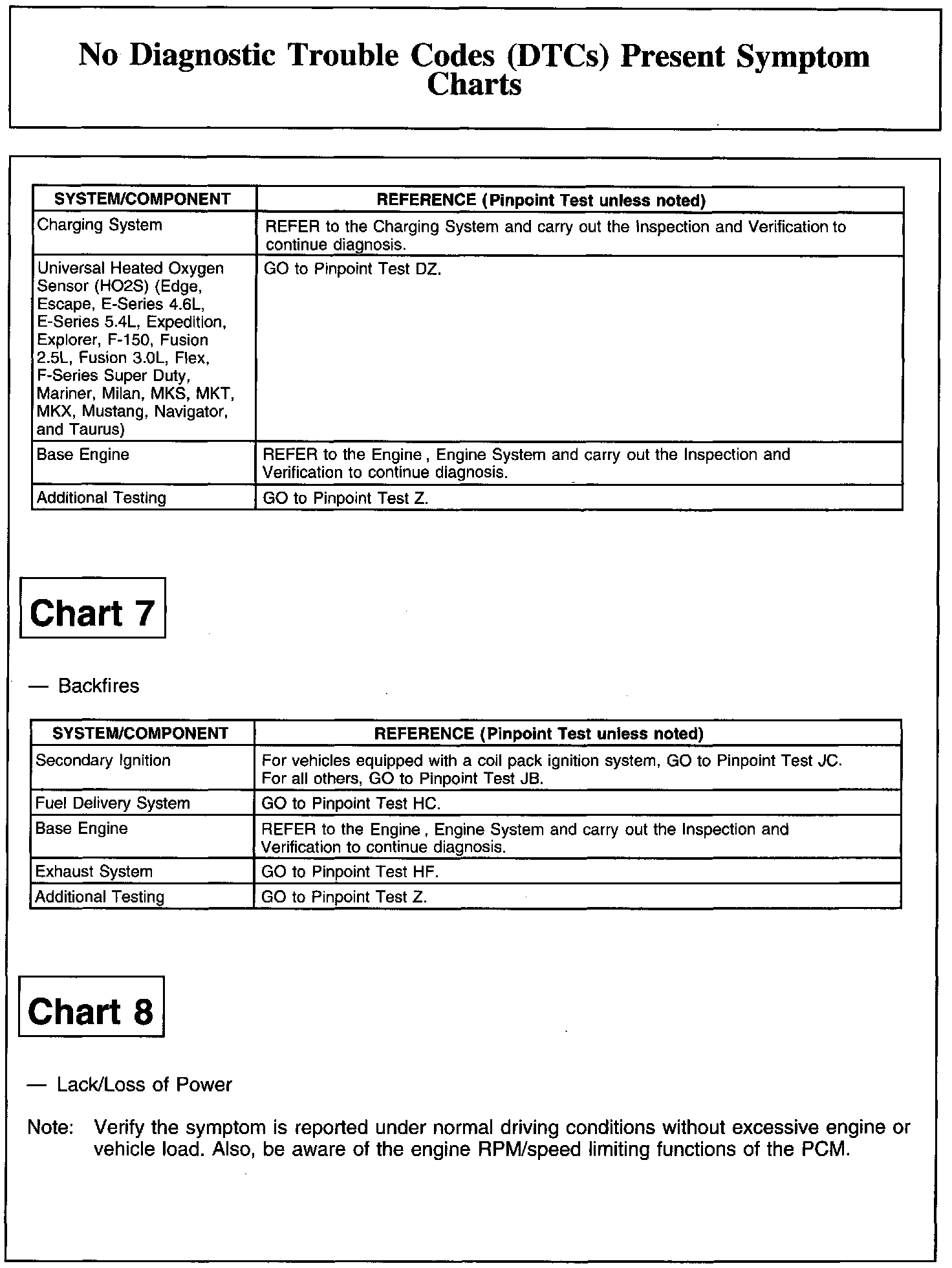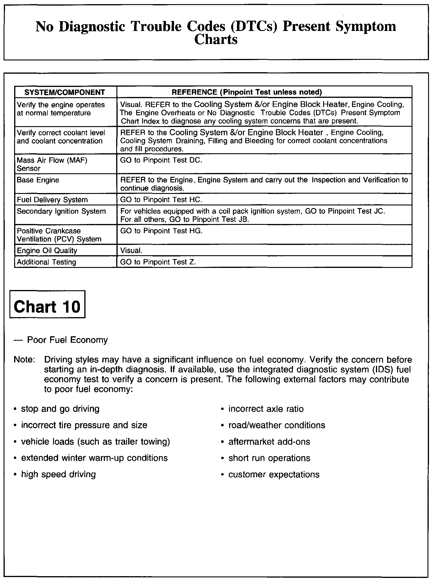 NO DIAGNOSTIC TROUBLE CODES (DTCS) PRESENT SYMPTOM CHARTSChart 1: