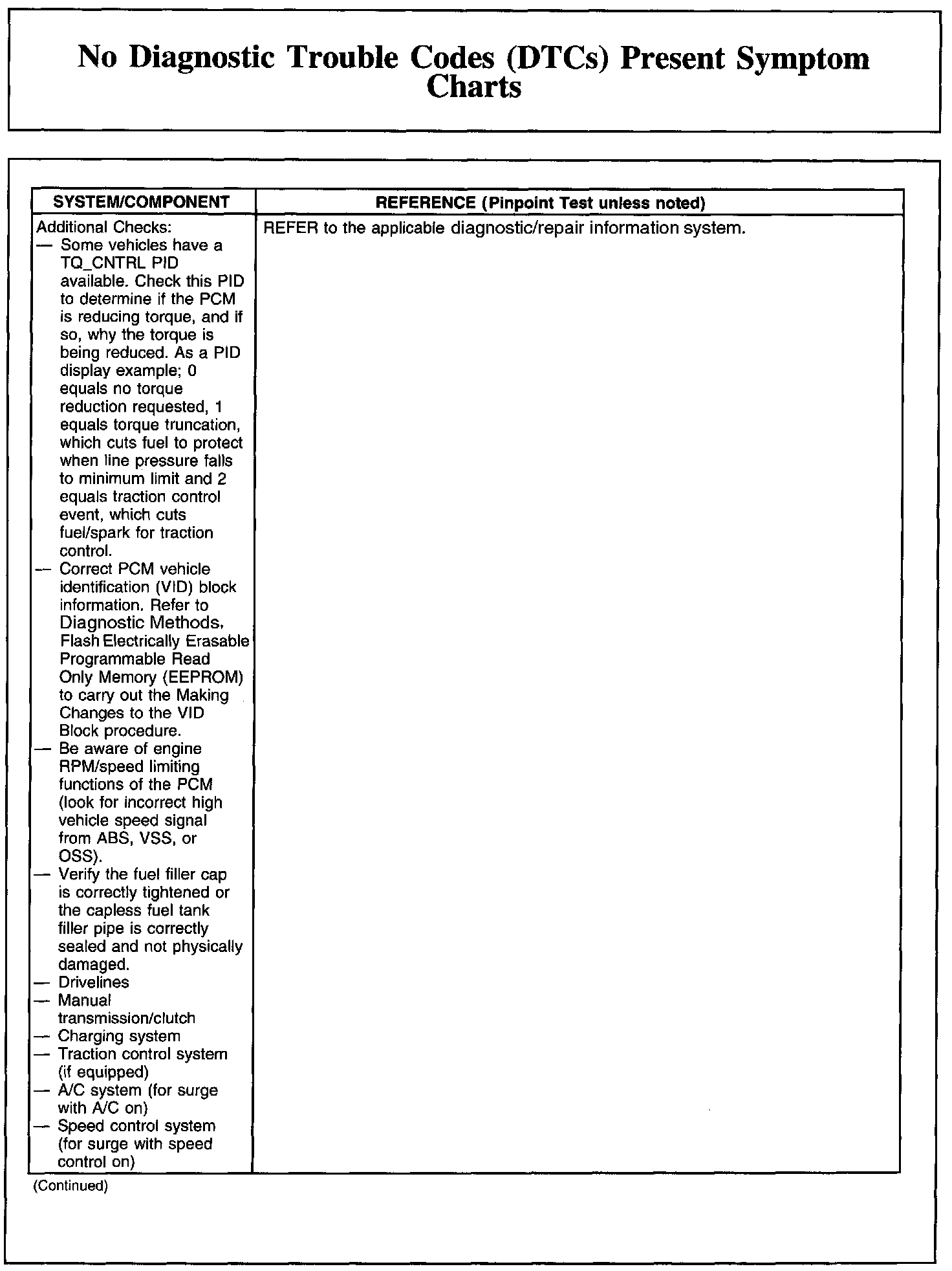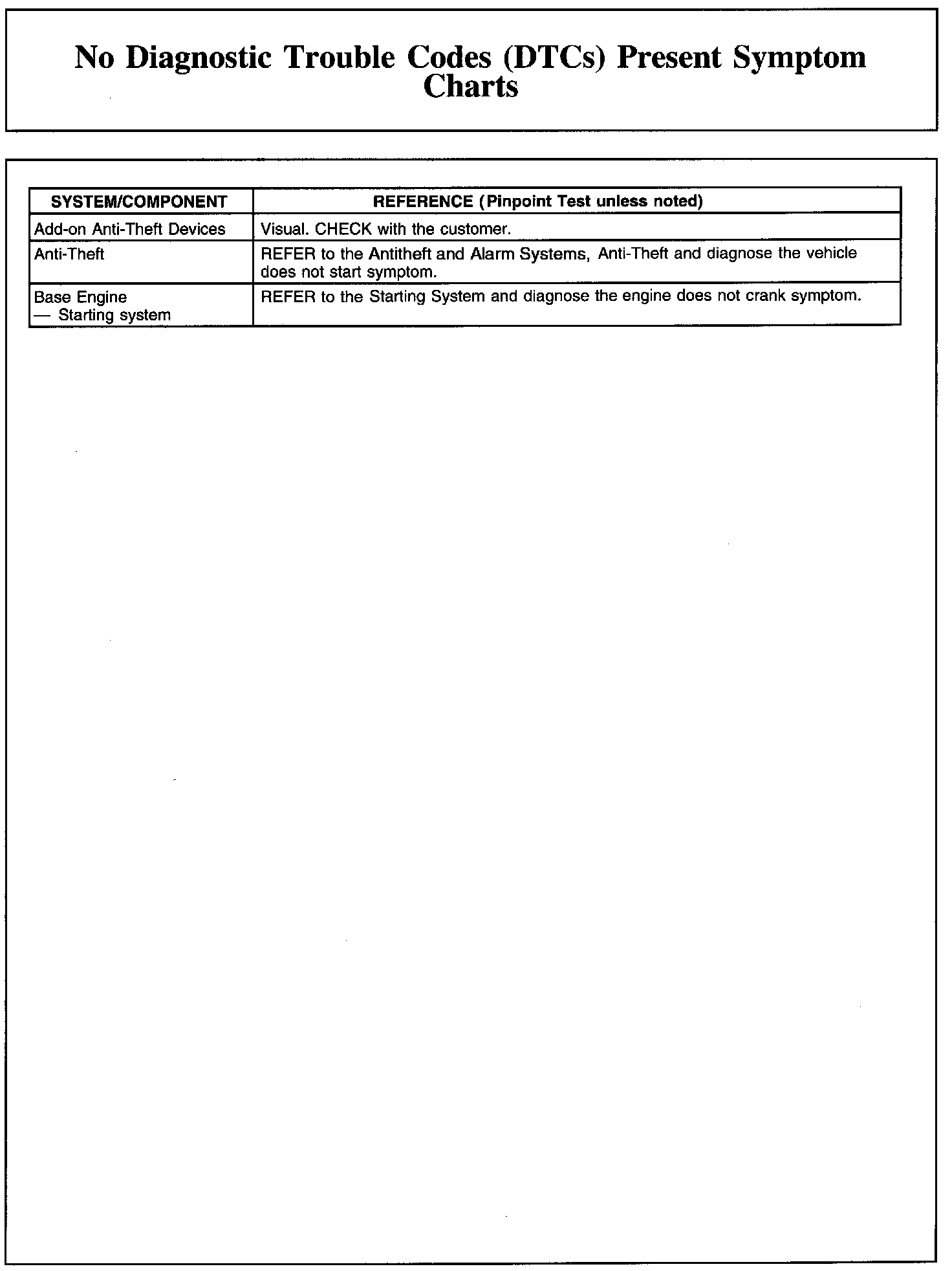 No Diagnostic Trouble Codes (DTCs) Present Symptom Charts