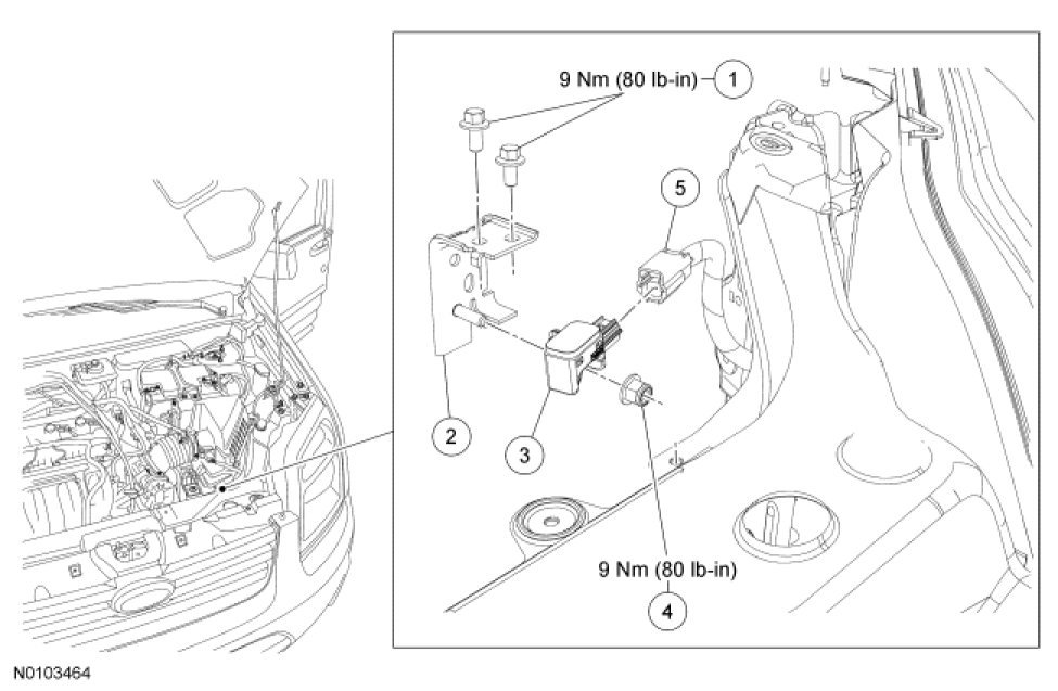 5. WARNING: Always tighten the fasteners of the restraints control module (RCM) and impact sensor (if equipped) to the specified torque. Failure to do so may result in incorrect restraint system operation, which increases the risk of personal injury or death in a crash.