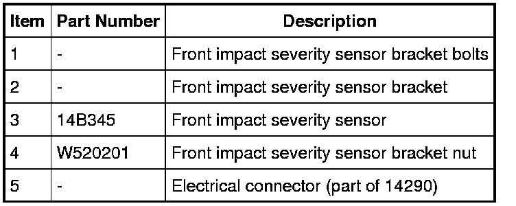 2. Remove the 2 bolts and front impact severity sensor and bracket.
