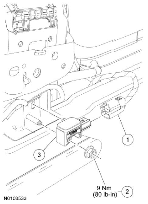 4. WARNING: Always tighten the fasteners of the restraints control module (RCM) and impact sensor (if equipped) to the specified torque. Failure to do so may result in incorrect restraint system operation, which increases the risk of personal injury or death in a crash.
