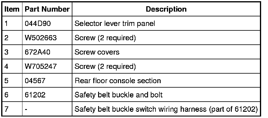 5. Remove the floor console rear section in the following sequence: