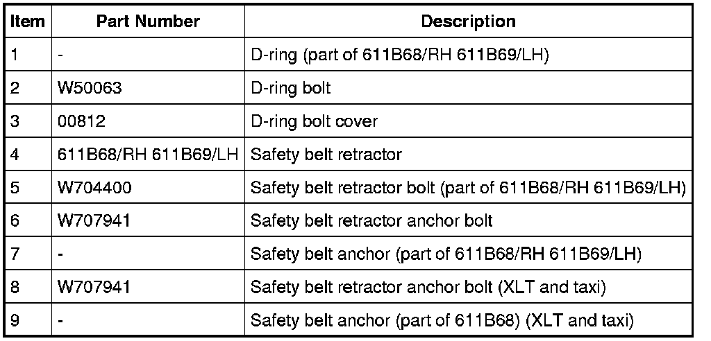 NOTE: XLT and taxi use safety belt retractor 611B68 for the LH and RH sides.