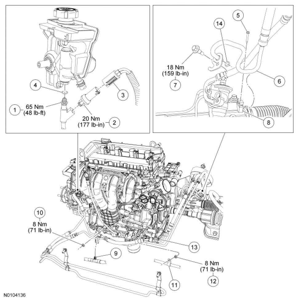 - To install, tighten to 65 Nm (48 lb-ft).