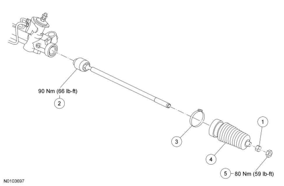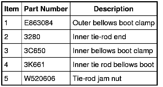 1. NOTICE: When servicing inner tie rods, a new bellows boot and clamps must be installed. The boots and clamps are designed to provide an airtight seal and protect the internal components of the steering gear. If the seal is not airtight, the vacuum generated during turning will draw water and contamination into the gear, causing failure of the steering gear components. Zip ties must not be used as they do not provide an airtight seal.
