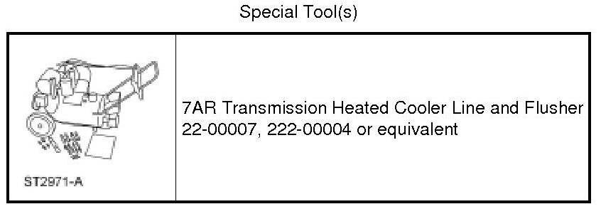 1. Carry out backflushing with a 7AR Transmission Heated Cooler Line and Flusher. Test equipment to make sure that a vigorous transmission fluid flow is present before proceeding. Install a new system filter if flow is weak or contaminated.
