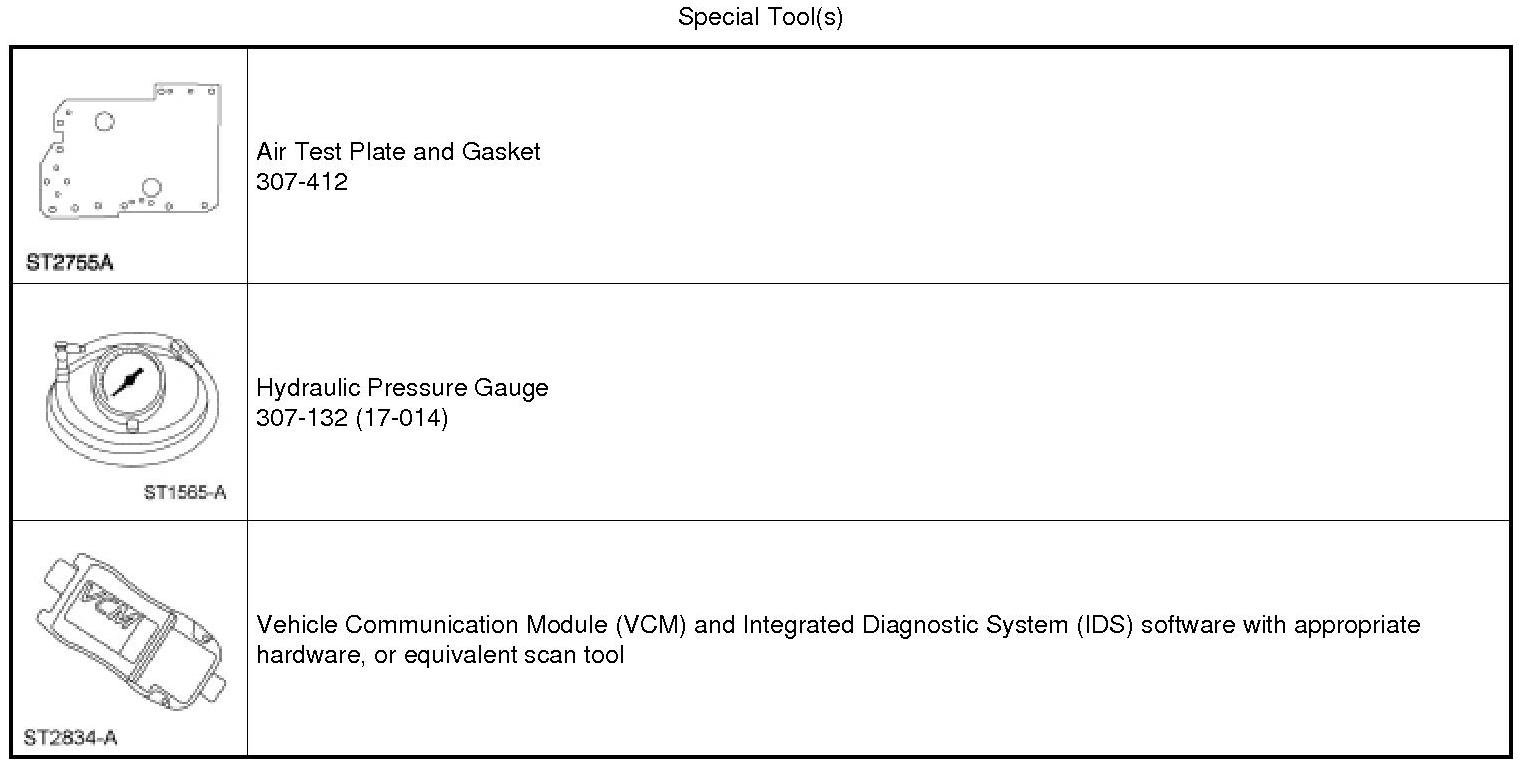 NOTICE: Carry out the Line Pressure Test prior to carrying out the Stall Speed Test. If line pressure is low at stall, do not carry out the Stall Speed Test or further transaxle damage will occur. Do not maintain Wide Open Throttle (WOT) in any gear range for more than 5 seconds.