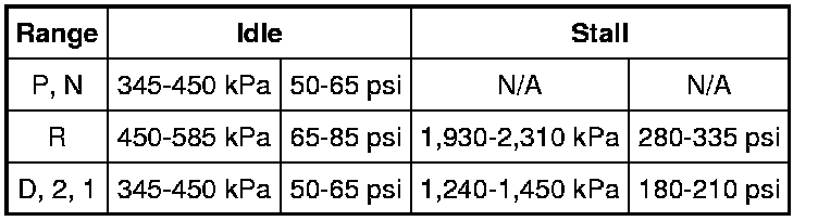 4. Start engine and check line pressures. Refer to the following Line Pressure Chart to determine if line pressure is within specifications.