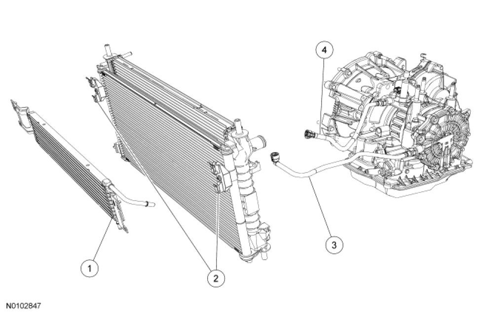 4. Disconnect the transmission fluid cooler tubes from the transmission fluid cooler.