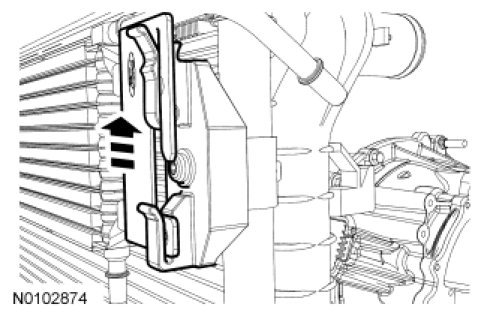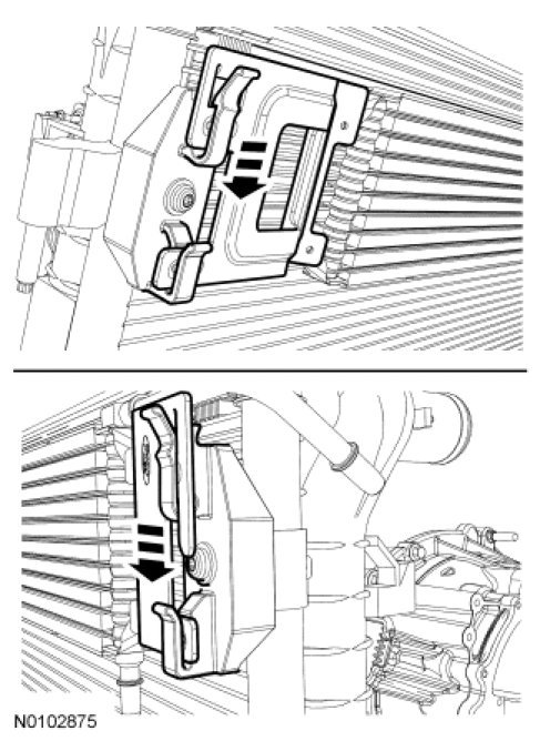 - Compress the tabs on the transmission fluid cooler tubes and slide the latch out of the transmission fluid cooler tube to unlock the transmission fluid cooler tube from the transmission fluid cooler.